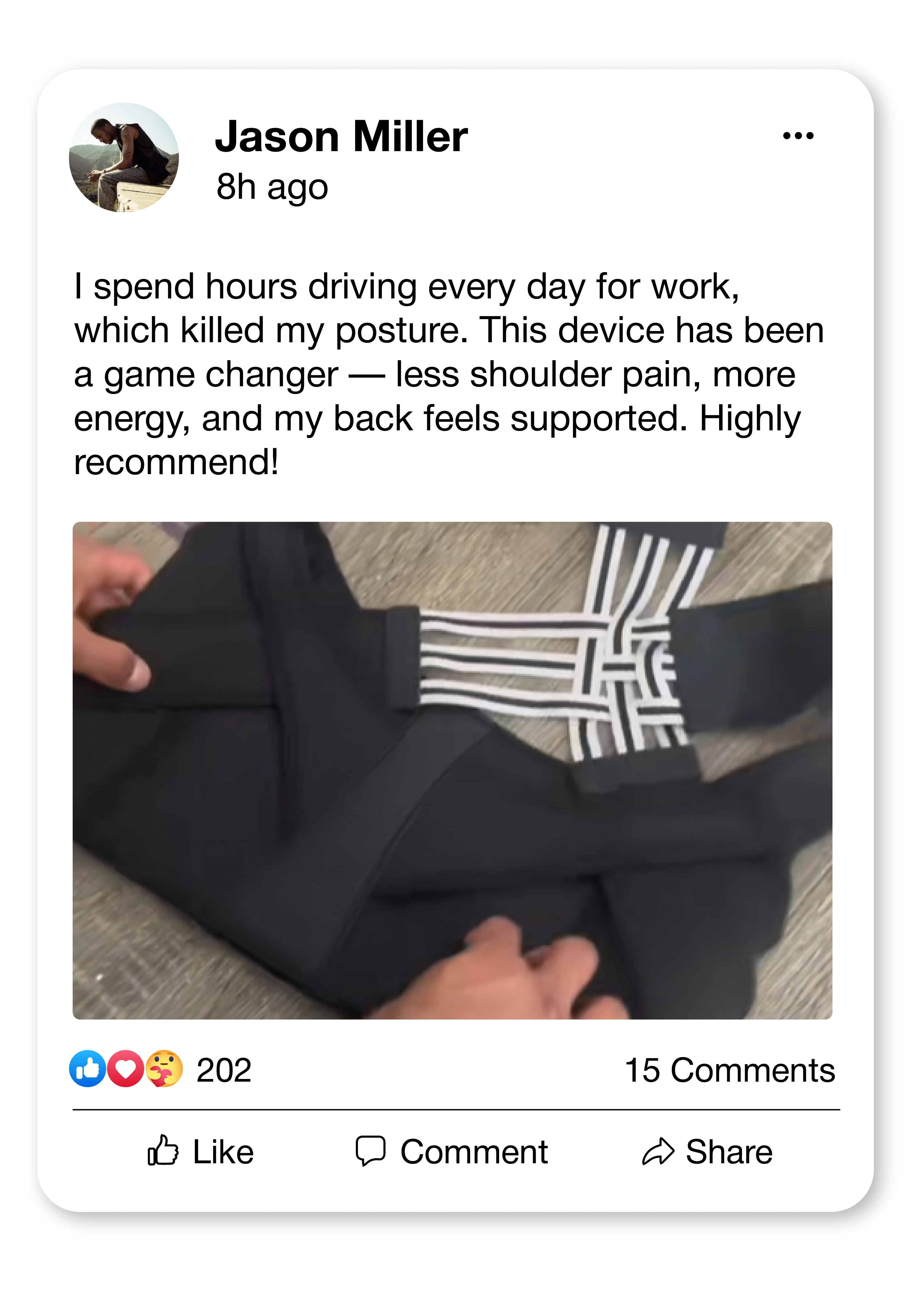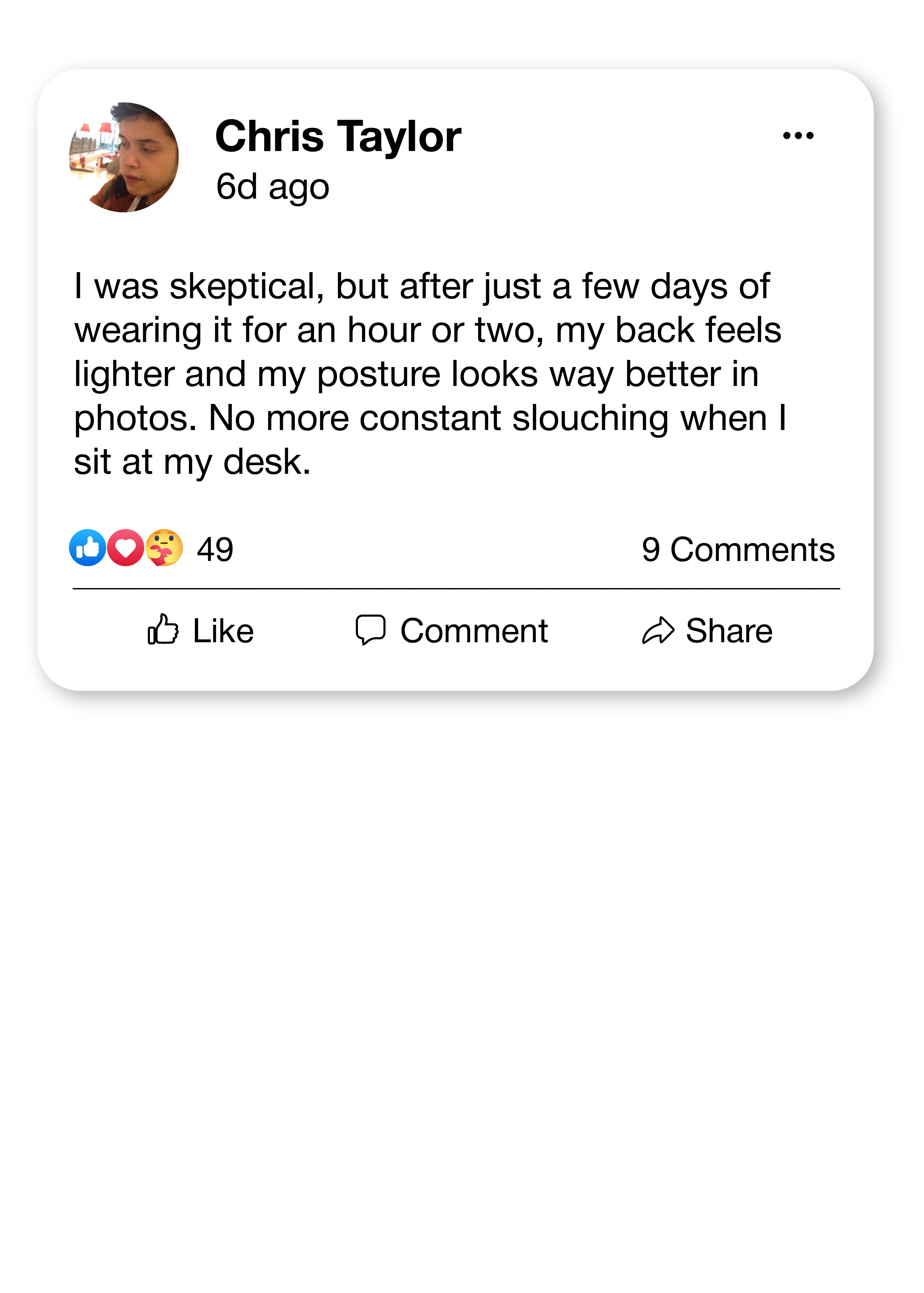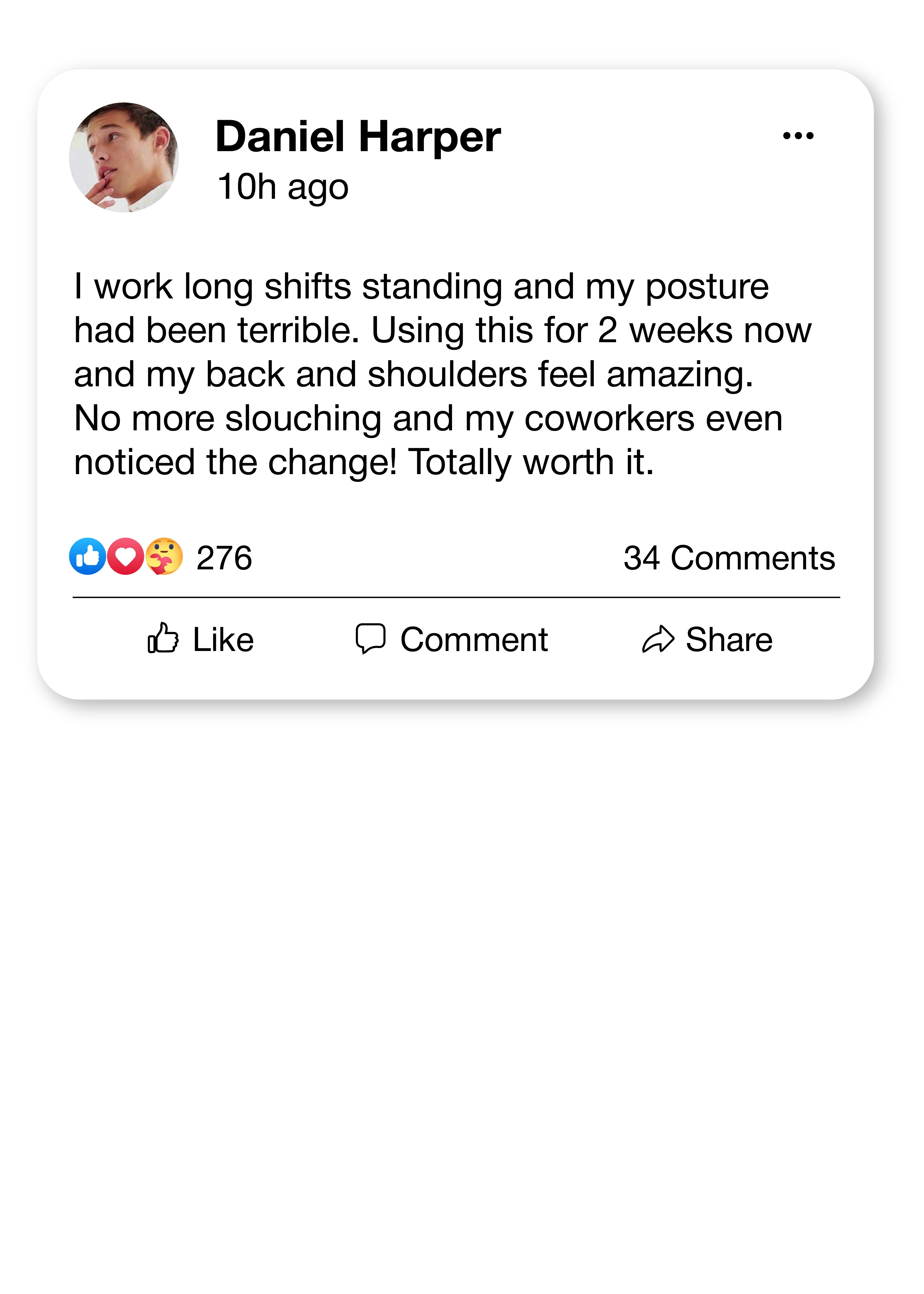 Feel the difference in your back, shoulders, and neck — with noticeable relief and improved posture in no time.